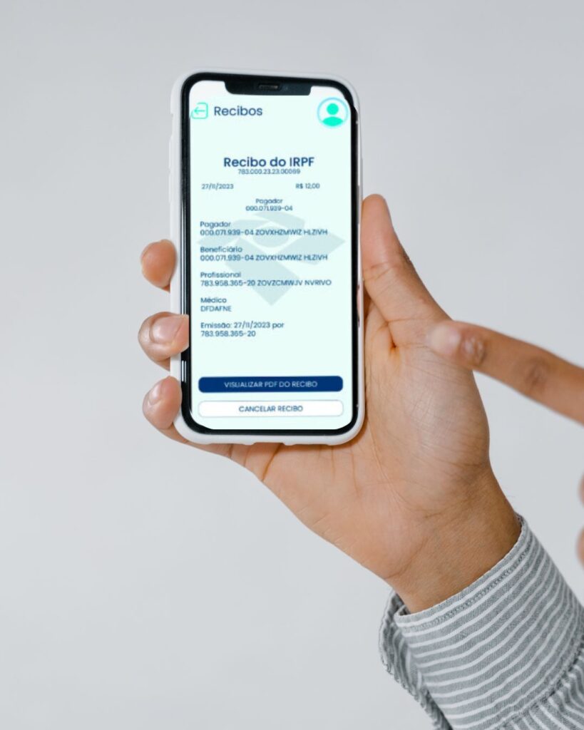 Facilidade na Declaração do Imposto de Renda: Os recibos emitidos pelo aplicativo são automaticamente integrados à declaração pré-preenchida do Imposto de Renda do paciente, eliminando a necessidade de armazenar recibos em papel.